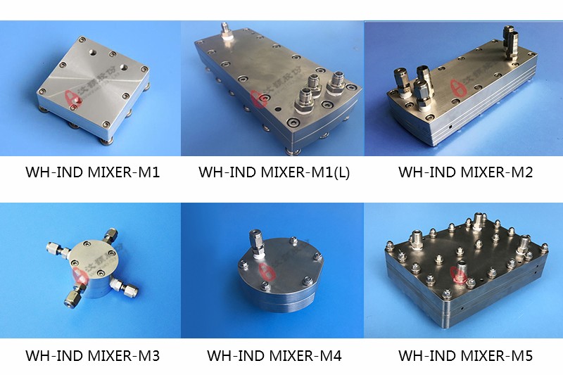 WH-IND MIXER-M1(L) | 材質:SUS316L、TA2 耐壓:0-20MPA 使用溫度:室溫 使用流量:0-200ml/m 混合原理:內交叉錯流 適用:液-液-液 |